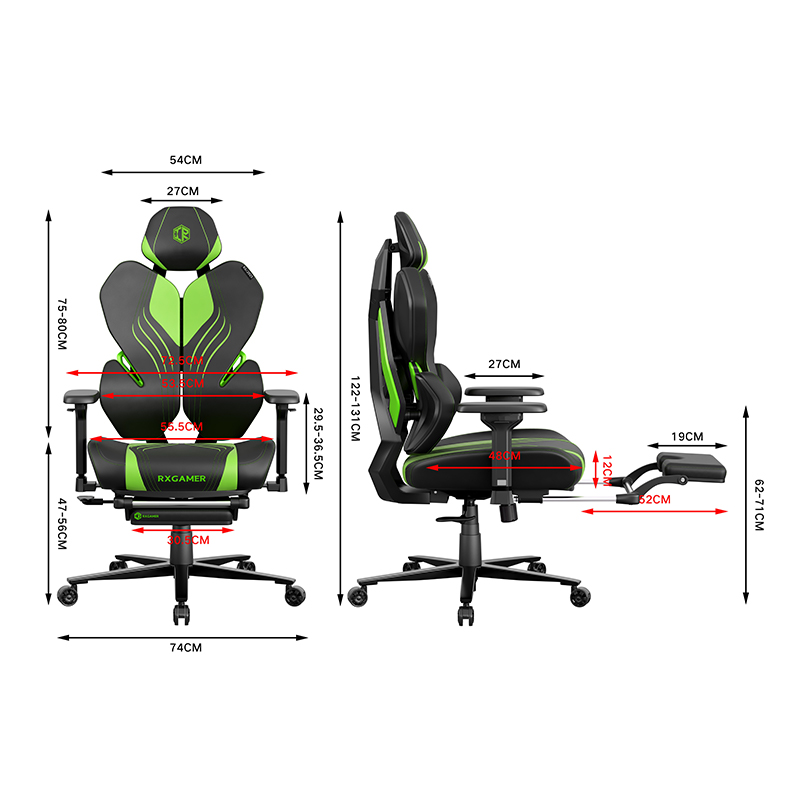 RXGAMER RX-K6-6303 Silla para juegos multifuncional con reposapiés retráctil en venta.