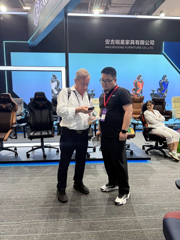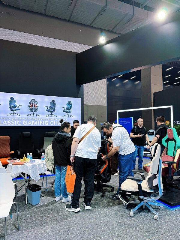 Durante la exposición, Anji Ruixing Furniture destacó sus sillas de juego de diseño y desarrollo propio, lo que marca un hito importante en el viaje de innovación de la empresa. Entre las muchas piezas destacadas estuvo el debut del RX-K7 , RX-K8 , y RX-6301PRO Serie de sillas gaming. Estas sillas fueron desarrolladas exclusivamente internamente, con moldes personalizados diseñados por nuestro equipo de expertos para crear formas únicas y ergonómicamente optimizadas que satisfagan las altas demandas de los jugadores. El lenguaje de diseño de estos modelos refleja nuestro compromiso de combinar funcionalidad con estética, ofreciendo una experiencia de juego cómoda e inmersiva.